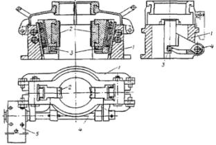 1 - корпус; 2 - плашки; 3 - кулачок; 4 - валик; 5 - ножная педаль
