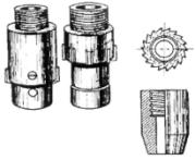 Фрезеры (рис. 22) используются для нескольких целей: разрушения алмазных коронок и мелких металлических предметов (фрезерные коронки), обработки мастера обрыва бурильных колонн (кольцевые фрезеры), разрушения колонкового набора с керном или его частей, оставшихся в скважине (фрезеры с направлением), выравнивания вмятин и неровностей внутри обсадной колонны