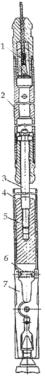 1 - подшипники; 2 - корпус; 3 - сальники; 4 - штроп; 5 - напорная труба; 6 - крышка корпуса; 7 - ствол.