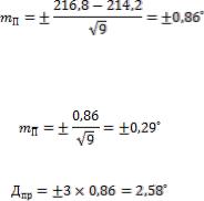 Так как │П7 – П4│>Q×R (1,6° > 1,45°), то П7 – промах. Исключаем его из серии измерений. При дальнейшей проверке оставшихся измерений определим, что промахи