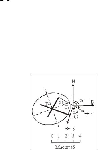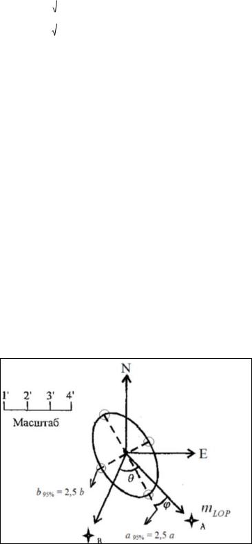 В задачах № 11.1 ÷ 11.30 даны пеленга и дистанции до двух ориентиров. Определить элементы 95% эллипса погрешностей обсервации по двум пеленгам.