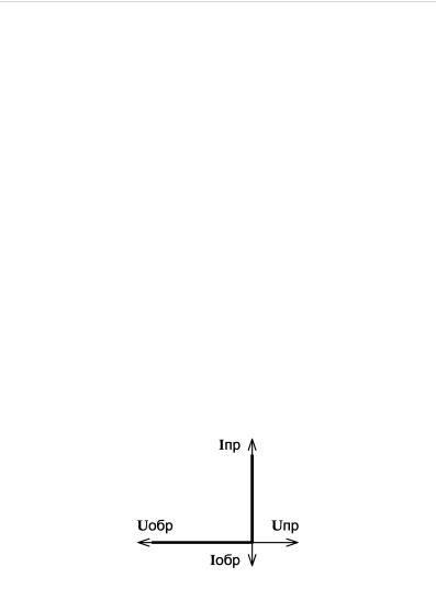 Идеальный полупроводниковый диод допускает протекание бесконечно большого прямого тока и выдерживает бесконечно большое обратное напряжение. Это отражено на вольтамперной характеристике, изображѐнной на рис. 3.1.