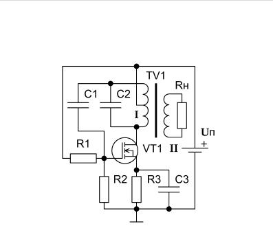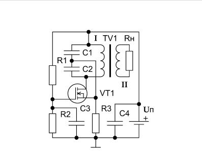 ной обмоткой TV1 и конденсатором C2, через конденсатор C1 поступает на затвор транзистора VT1. Резисторы R1 и R2 обеспечивают необходимое смещение, а компоненты C3 и R3 нужны для термостабилизации автогенератора.