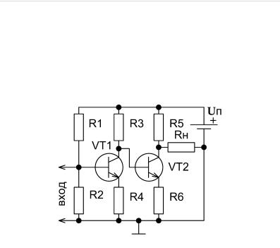 Принципиальная схема простейшего усилителя постоянного тока с непосредственными связями с двумя биполярными n-p-n транзисторами приведена на рис. 11.12.