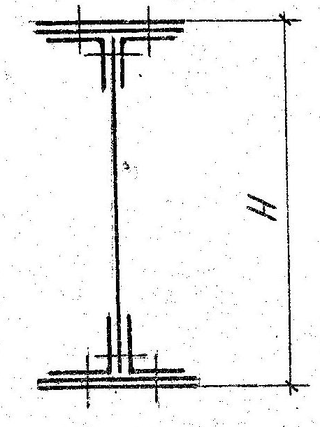 Отношение Iбр/Sбр может быть приближенно принято для клепаных балок без горизонтальных листов (с высотой стенки от 350 до 1500 мм) равным 0,835hвл, для балок с одной парой горизонтальных листов (с высотой стенки от 550 до 1700 мм) равным 0,865hвл, где hвл – высота стенки балки, см.
