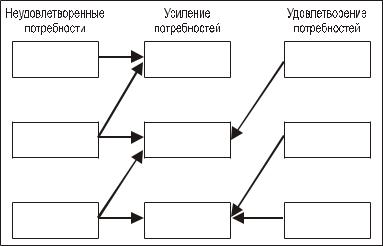 К. Альдерфер установил связь между удовлетворением потребностей и их активизацией и в результате выделил семь зависимостей (принципов) такого рода (см. рис. 8):