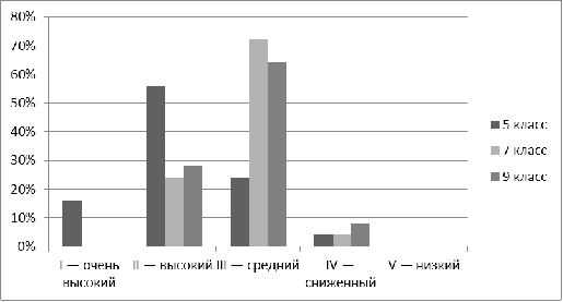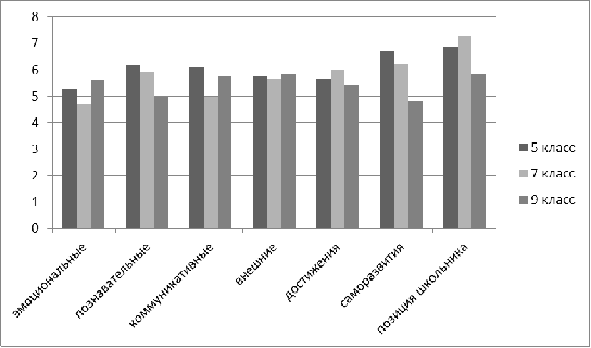 Также большее количество учащихся пятого класса имеют высокий уровень учебной мотивации. Гораздо меньше таких учащихся наблюдается в седьмых и девятых классах, зато среди учащихся со средним уровнем они явно доминируют. У таких учащихся в среднем положительное отношение к школе, но школа привлекает их внеучебной деятельностью. Такие дети достаточно благополучно чувствуют себя в школе, и посещают ее, чтобы общаться с друзьями, с учителями. Им нравится ощущать себя учащимися, иметь красивый портфель, ручки, пенал, тетради. Познавательные мотивы у них сформированы в меньшей степени, и сам учебный процесс их мало привлекает.