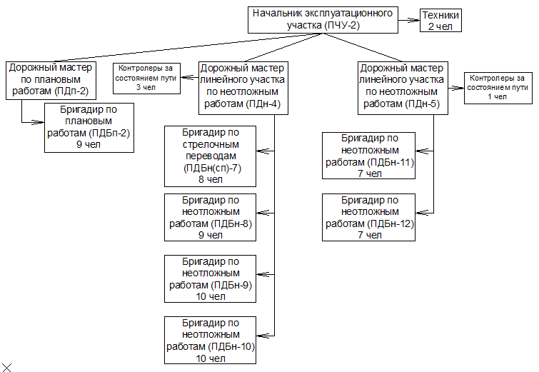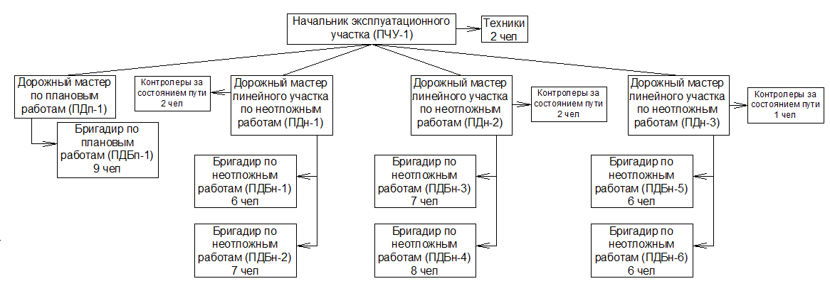 Рис.1.1 Организационная структура эксплуатационного участка перегонного типа
