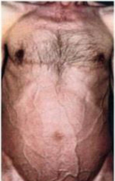 •Расширение вен в системе портокавальных анастомозов (кардиальные отделы пищевода и желудка, поверхностные вены живота, геморроидальные вены)