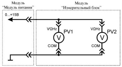 Рис. 1.3. Схема электрическая соединений лабораторных модулей для измерения постоянного напряжения