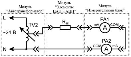 2) Согласно схеме, представленной на рис. 1.4, выполнить электрические соединения модулей для измерения переменного тока.
