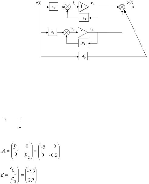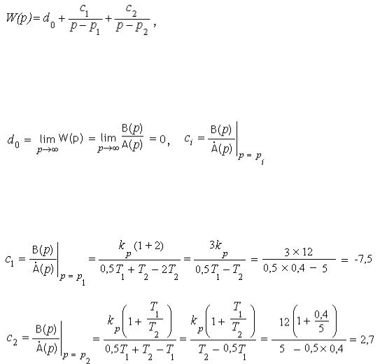 где p1 = -2/T1 = -2/0,4 = -5; p2 = -1/T2 = -1/5 = -0,2 - корни характеристического уравнения системы А(р) = 0.