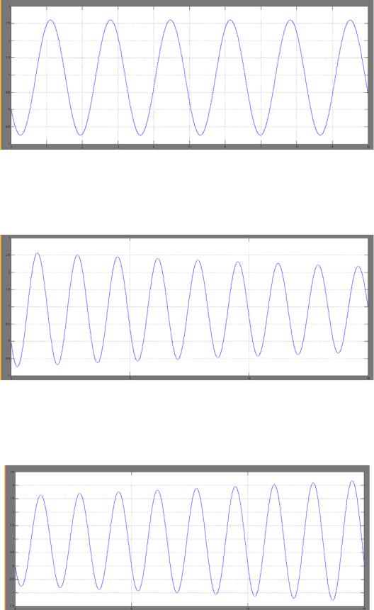 На рис. 5.4 представлены показания Scope для случая, когда kр = 13,1 > kпред. Из рисунка видно, что при kр > kпред переходной процесс в системе расходится (амплитуда колебаний возрастает с течением времени).