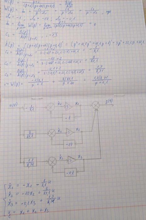 Построить модель в пространстве состояний в канонической форме, для объекта с передаточной функцией: