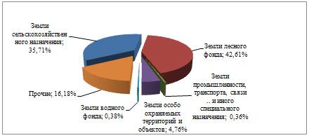 Земли лесного фонда - 42,61 %;