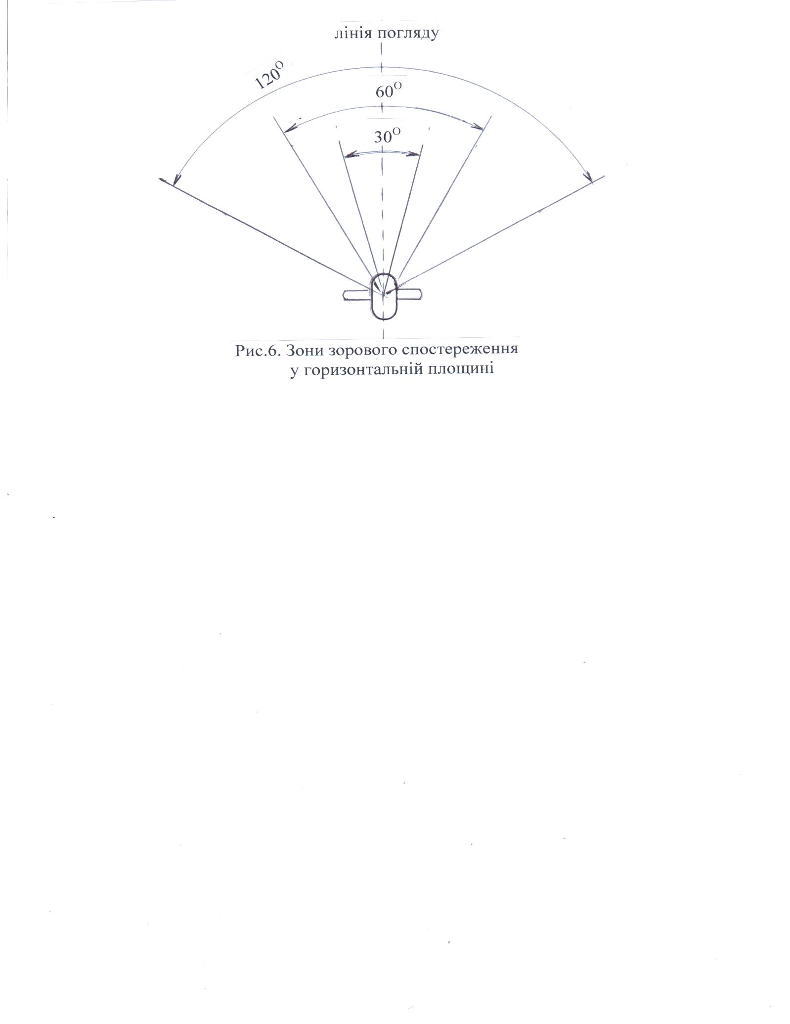 Рис. 5.6. Зони зорового спостереження у горизонтальній площині
