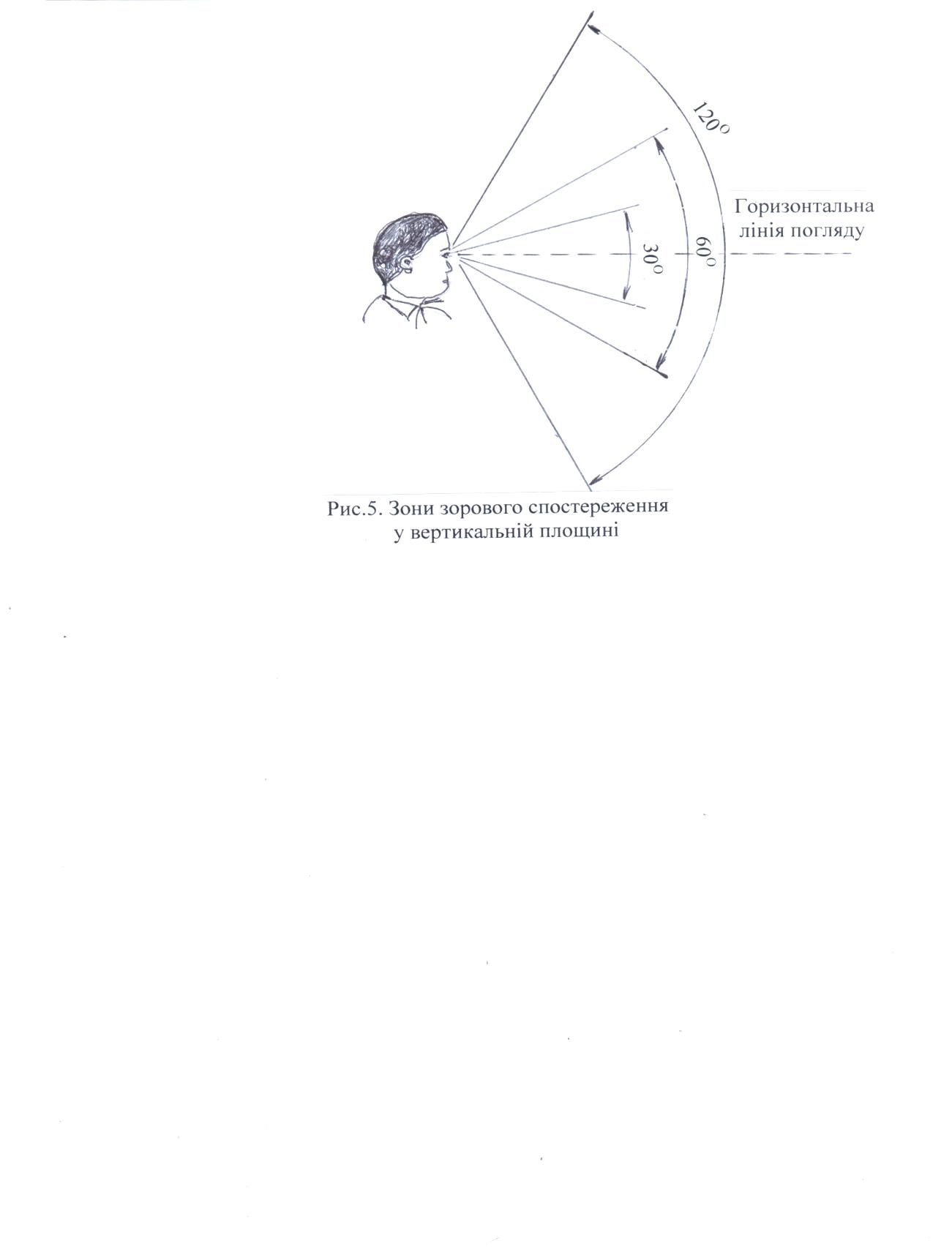 Рис. 5.5. Зони зорового спостереження у вертикальній площині