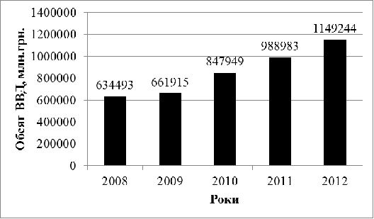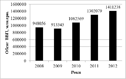 Як видно з даної діаграми за останні роки, обсяг валового внутрішнього продукту продовжує збільшуватись після економічної кризи 2008 року. Це свідчить про позитивні зміни національного виробництва. Взагалі, нині Україна все ще знаходиться на фазі пожвавлення, так як економіка нашої країни не пристосувалася до переходу з командно-адміністративної форми до ринкової. Для забезпечення подальшого позитивного функціонування та розвитку економічного стану необхідно розробляти соціально-економічну стратегію розвитку прогнозів валового внутрішнього продукту, як одного з найважливіших показників країни. ВВП не тільки відбиває підсумки функціонування економіки, а й відіграє виняткову роль у механізмі регулювання ринкових процесів, слугує передумовою застосування стимулюючих, антиінфляційних методів монетарної і фіскальної політики. Всі регулюючі заходи уряду мають бути підпорядковані забезпеченню заданої величини ВВП. Саме на основі його динаміки та структури визначається рівень розвитку макроекономічної системи.