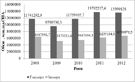 експорту-імпорту по роках в Україні [1].