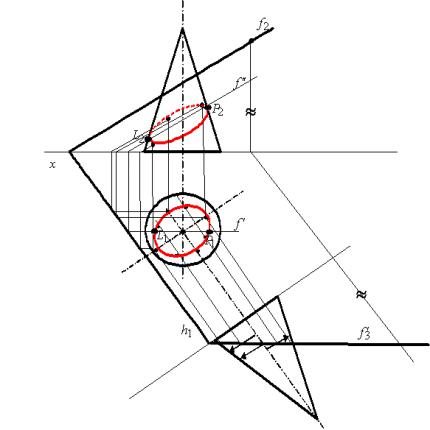 18.8. Пересечение конуса плоскостью, заданной следами.
