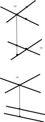 Одноименные проекции двух пересекающихся прямых могут пересекаться, точки их пересечения не лежат на одной линии связи (9.4) или быть параллельными (9.4).
