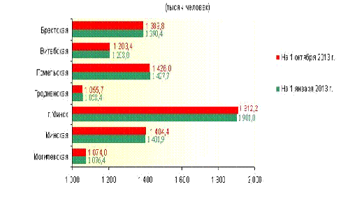 Численность населения Республики Беларусь на 1 октября 2013 года составила 9 465,5 тыс. человек.