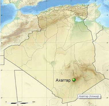 3 - Расположение национального паркаАхаггар на карте Африки