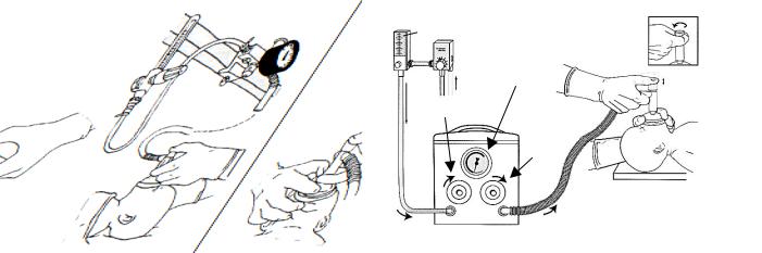 3)виставити рівень максимального тиску на вдиху (PIP), блокуючи пальцем отвір клапана РЕЕР і повертаючи ручку відповідного регулятора до досягнення бажаного значення (рекомендований показник – 20-25 см Н2О).