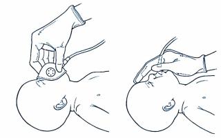 •перевірити прохідність дихальних шляхів (змінити положення голови; відсмоктати з верхніх ДШ; вентилювати, відкривши рот дитині за допомогою ротового повітроводу);