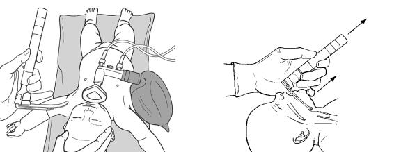 ШВЛ маскою протягом кількох хвилин вимагає введення ротошлункового зонда (8F), щоб запобігти роздуванню шлунка газом і наступній регургітації шлункового вмісту: