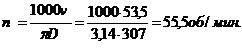 ) ввести режимы обработки (nшп, №