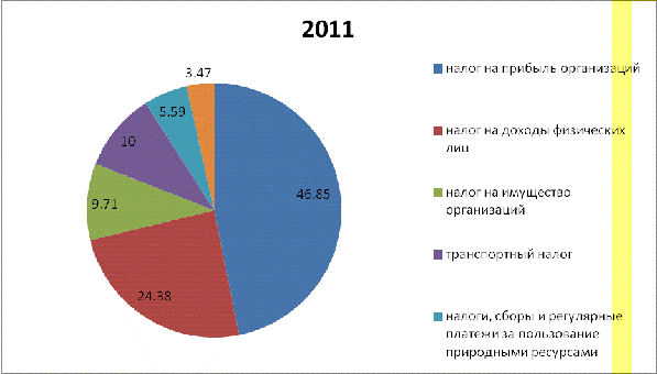 год показывает, что наибольший удельный вес имеет налог на прибыль организаций,