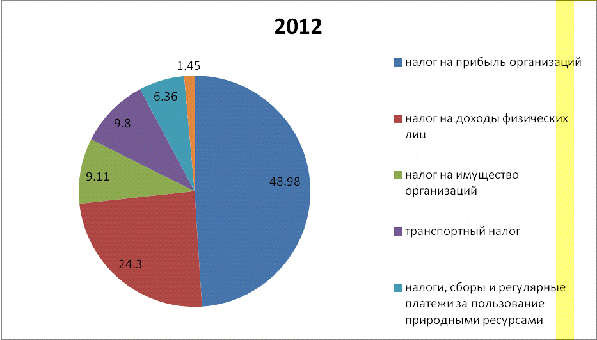 По результатам проведенного анализа, получили, что основными источниками пополнения бюджета края стали такие прямые налоги как, налог на прибыль организаций, налог на доходы физических лиц, налог на имущество организаций и транспортный налог.