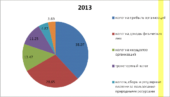 Налог на имущество организаций составляет около 13,5 процентов в 2013году. Отмечается рост поступлений по данному налогу, как в относительной, так и в абсолютной величине.