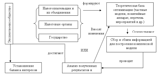 Поскольку современной методологией для интерпретации процессов с целью их теоретического анализа чаще всего используются средства моделирования, наиболее эффективным инструментом в данном случае будет построение модели оптимизации налогообложения коммерческих банков, отражающей соблюдение (несоблюдение) основного критерия - установления баланса интересов - а также учитывающий следующие особенности: