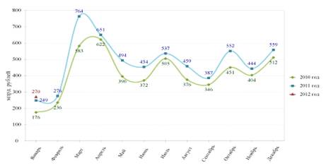 увеличилось на 5% (+3 млрд. руб.) по сравнению с 2011 годом, объем которого