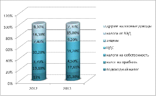 подоходного налога (на 2,3%), ростом доли акцизов (на 1,8%), ростом доли НДС