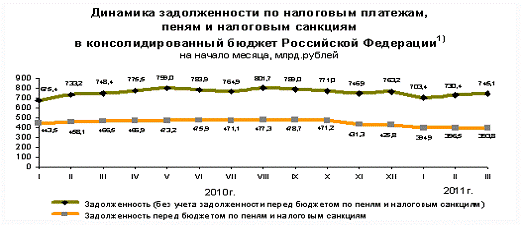 Задолженность по уплате пеней и налоговых санкций на 1 марта 2011г. сократилась