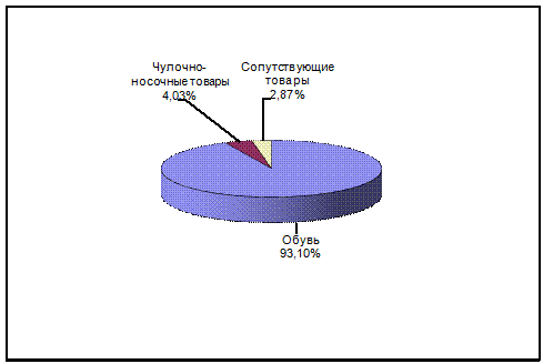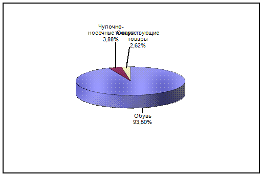 Как показывают данные рис. 2.1-2.3, в структуре товарооборота преобладает ассортиментная группа - обувь, являющаяся для торгового предприятия основной. Так, доля обуви в структуре товарооборота за 2012-2014 гг. выросла с 93% до 93,50%. Второе место в структуре товарооборота занимают чулочно-носочные изделия.