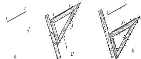 крапку А паралельно заданої прямої ВС (рис. 30, а), косинець прикладають до