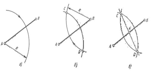відрізка АВ циркулем провести двох дуг окружності радіусом R, трохи більшому