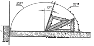 рейсшину, можна побудувати кути: 15° від вертикальної прямої, 75 і 105° (рис.