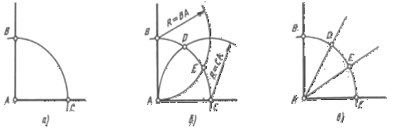 сторонами кута, одержують крапки В и С (рис. 40, а). Потім із крапок В и С