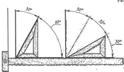 косинця з кутами 30, 60 і 90° і рейсшини або циркуля.