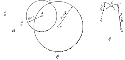 44, б). У перетинанні цих окружностей одержують крапки С и С1. З двох отриманих