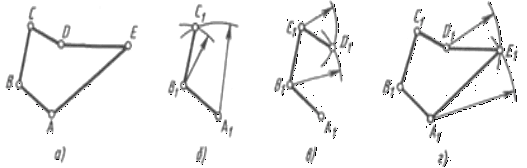 крапку D1 із крапкою С1, одержують сторону багатокутника С1D1 (рис. 45, в).