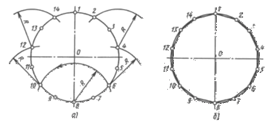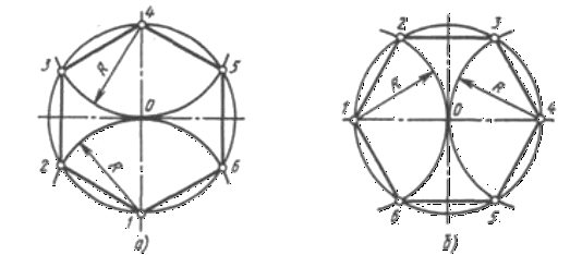 (рис. 55, а). З'єднавши послідовно всі крапки, одержують правильний уписаний