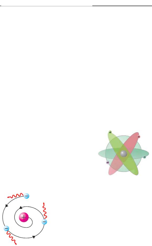 Таким образом, из законов классической физики неизбежно следовал вывод, что, двигаясь ускоренно по определенным орби там, электрон, излучающий энергию в виде электромагнитных волн, со временем должен терять скорость и, в конце концов, упасть на ядро (что положило бы конец существованию атома).