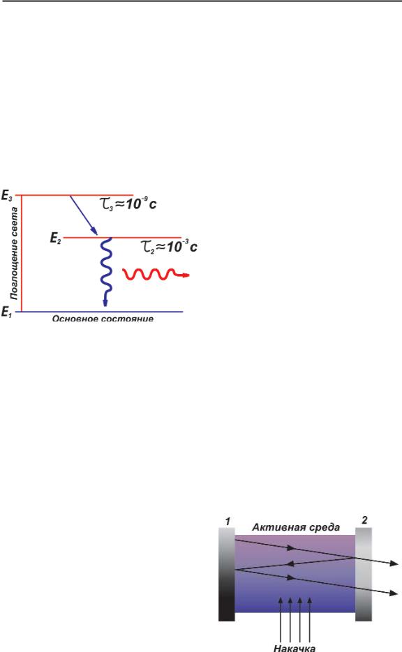 Рис 37. Трехуровневая схема оптической (уровень Е3), время жизни ато накачки