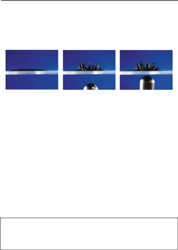 ферромагнитная жидкость, способная принимать определен ную форму под действием электромагнитного поля. На рисун ке изображены несколько кадров видеоролика, демонстрирую щего поведение ферромагнитной жидкости под действием электромагнитного поля.